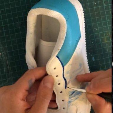 Nach der getrockneten Lederfarbe trage ich zum Schluss eine Lackschicht auf. Diese schützt den Sneaker vor Kratzern und anderen kleinen Schäden.